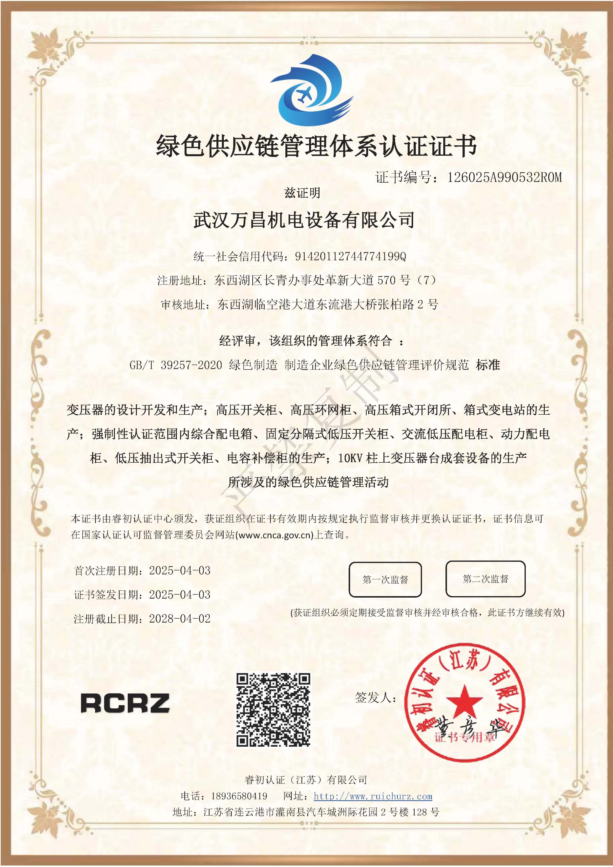 - 綠色工廠評(píng)價(jià)認(rèn)證證書