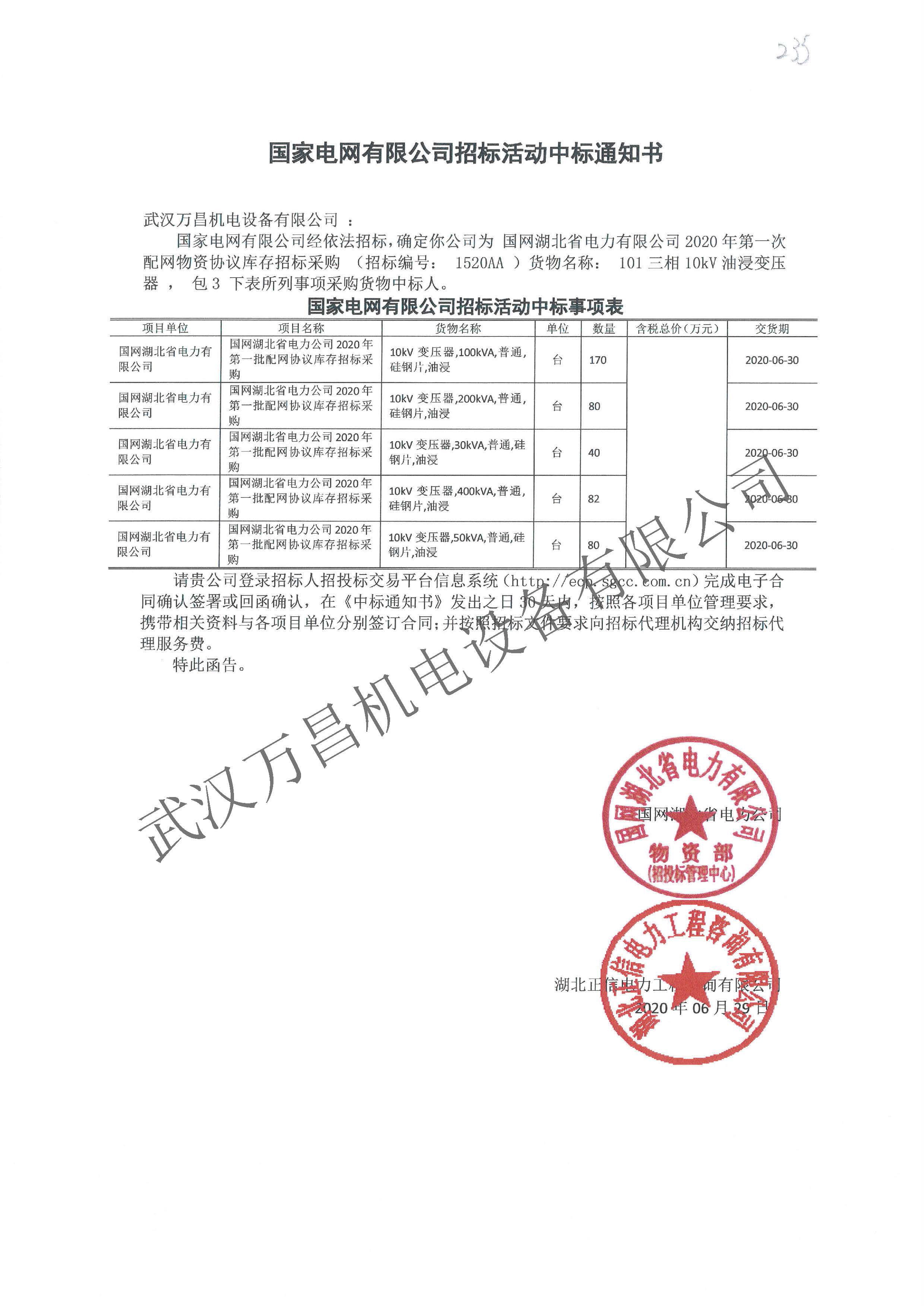 2020年中標(biāo)國網(wǎng)湖北省協(xié)議庫存項目